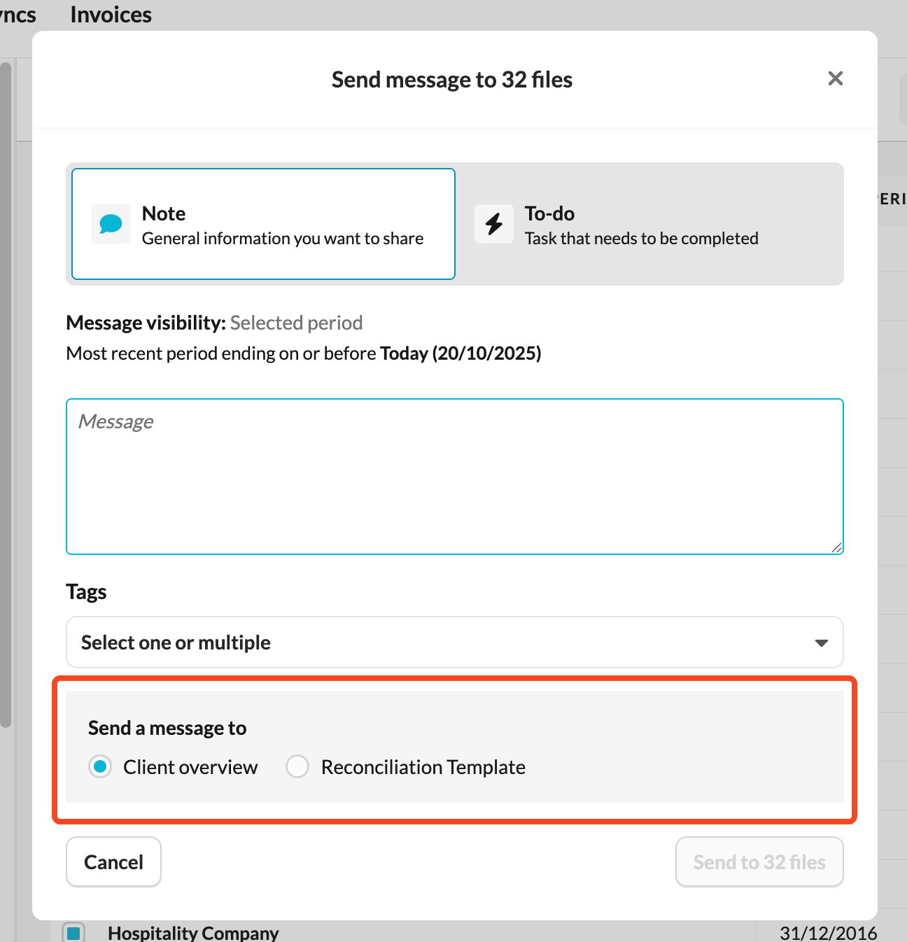 - You can tag notes using @internal, @external, or @everyone to control visibility. See the article about Communication in Silverfin for more details on tagging.