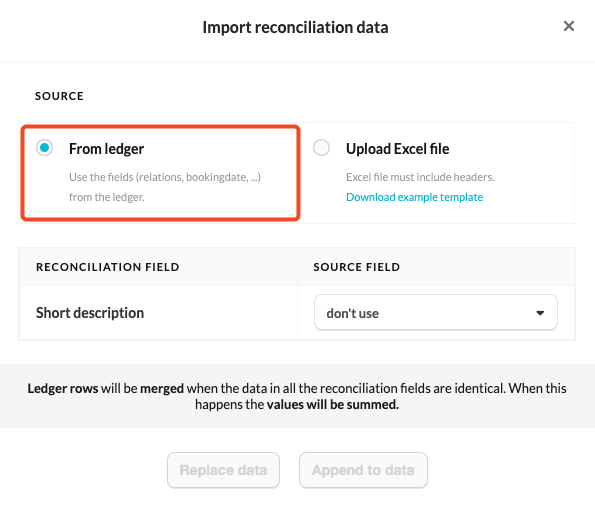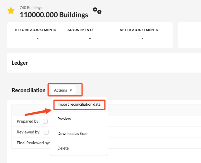 - Import reconciliation data from the ledger