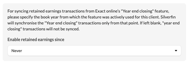- In Silverfin, verify if the selected "retained earnings" setting is correctly selected. This can be verified and adjusted through Edit Client > sync > switch sync.