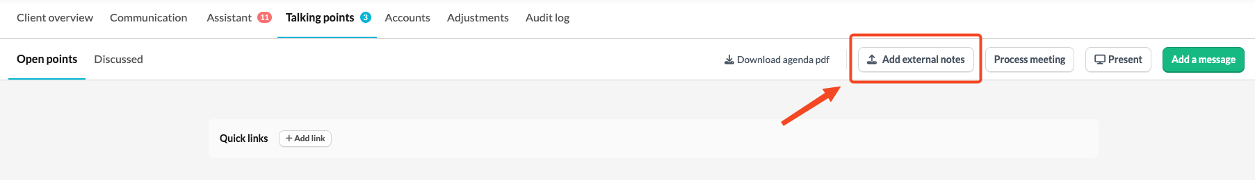 - Add a Note or To-do in a 'Talking points' tab.