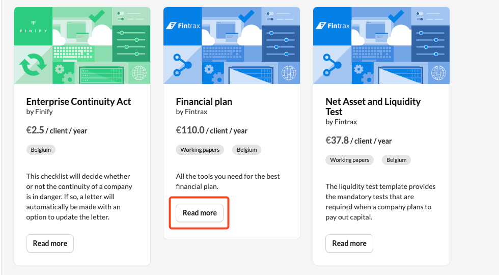 Fintrax packages are available in the Silverfin Marketplace, which can only be accessed by users with admin rights. To find it: