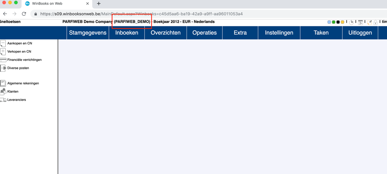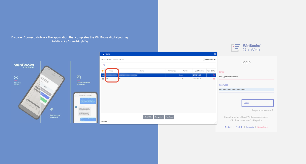 - If you are already in the correct file in WinbooksOnWeb, the code is shown in brackets next to the company name.