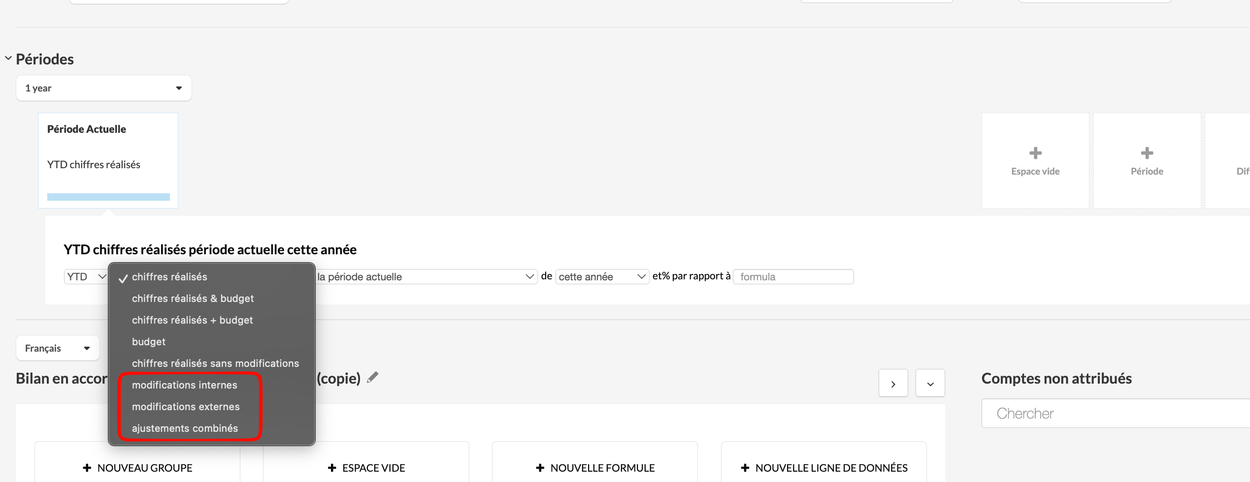 - Les modifications ne s'appliquent qu'à la période dans laquelle elles sont créées. Elles ne sont pas reportées automatiquement, mais peuvent être copiées si nécessaire.