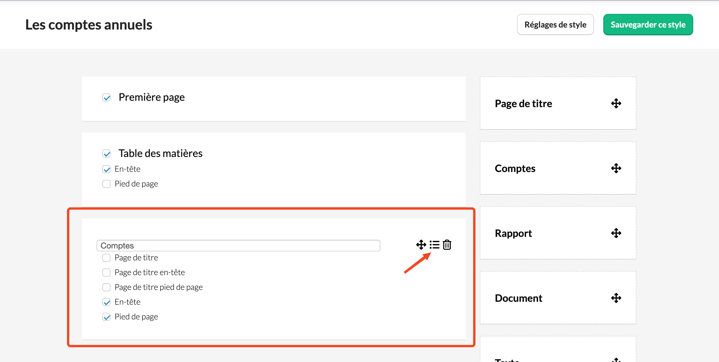 Certains titres peuvent apparaître deux fois dans la liste. Cela est normal car les comptes annuels utilisent différents modèles. Chaque titre correspond à un modèle distinct.