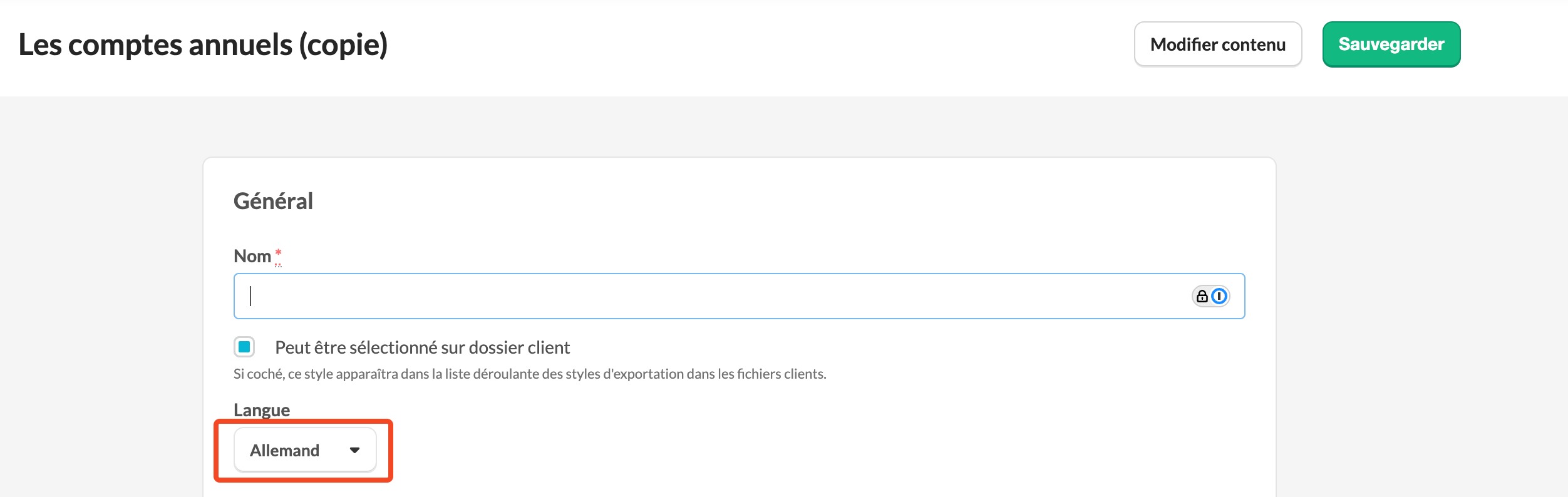- Créer un réglage pour les comptes annuels en néerlandais, français ou anglais