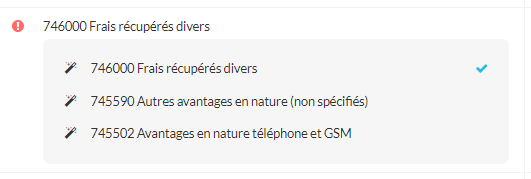 - Propositions à faible certitude: Si une proposition est marquée avec un point d'exclamation, d'autres propositions principales de l'IA seront affichées avec une icône de baguette magique. Vous pouvez sélectionner l'une de ces propositions pour remapper le compte ou confirmer la proposition actuelle à faible certitude.