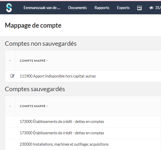 - Lorsque vous importez un dossier avec des comptes non mappés et que l'IA Mapping est activée, Silverfin génère une proposition que vous pouvez modifier.