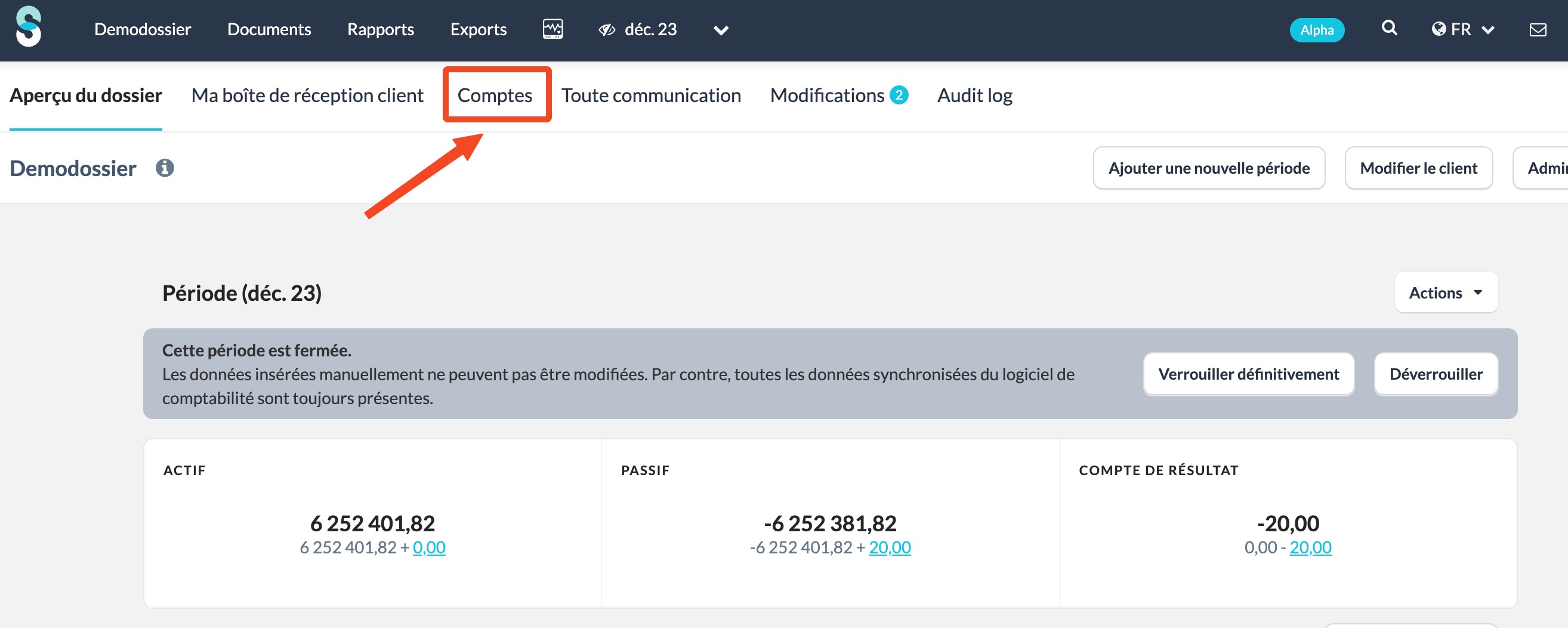 - Cliquez sur l'onglet "Comptes" dans la page d'aperçu client.