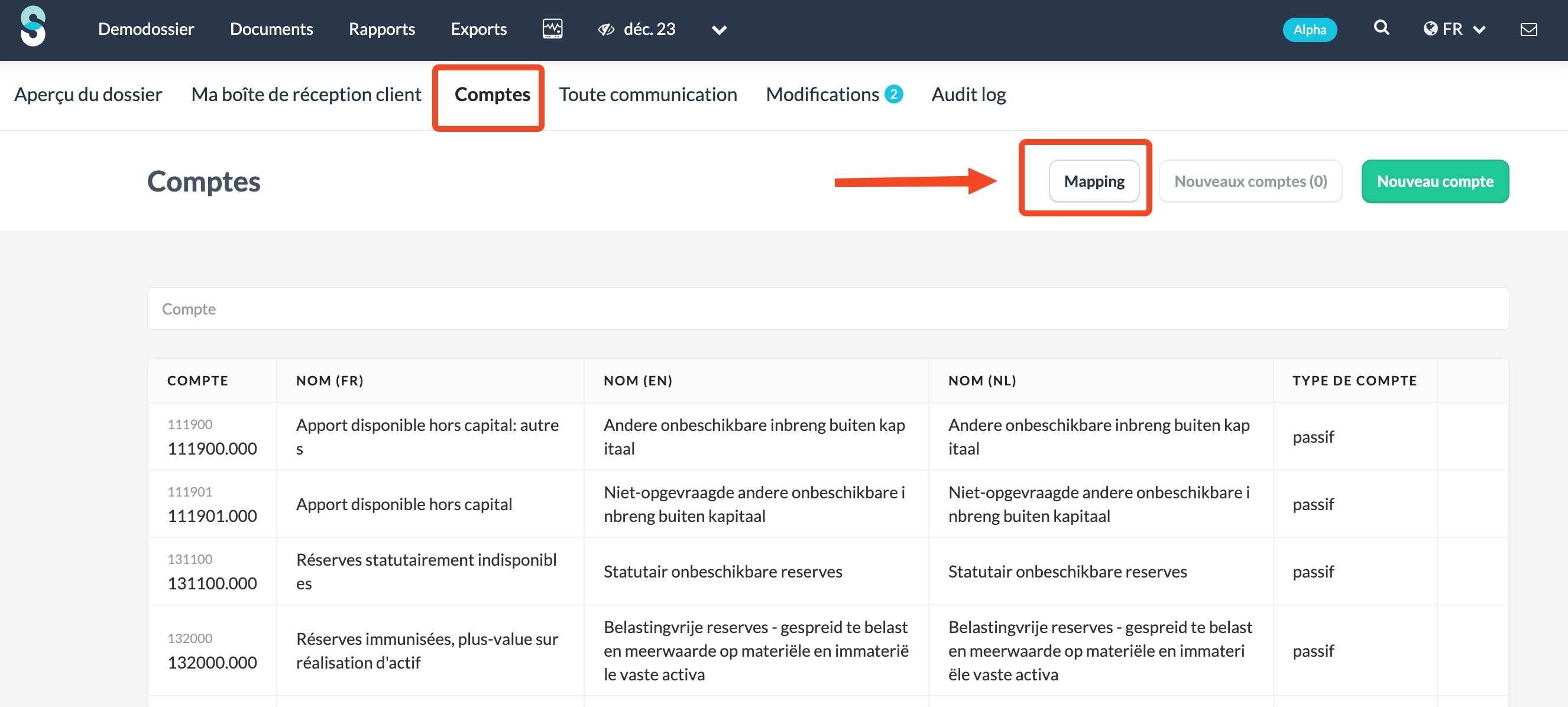 Pour utiliser l'IA Mapping, assurez-vous que la BE Silverfin Mapping List du Marketplace est active dans votre dossier. Si vous avez des questions ou besoin d’assistance, veuillez contacter votre Responsable du Succès Client (CSM).Comment utiliser l'IA Mapping?