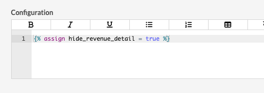 En ajoutant la ligne {% assign hide_revenue_detail = true %} à la configuration au niveau de l'entreprise, vous pouvez vous assurer que les comptes détaillés ne sont pas affichés dans l'exportation. Cela vous donne plus de contrôle sur les informations présentées dans l'export.