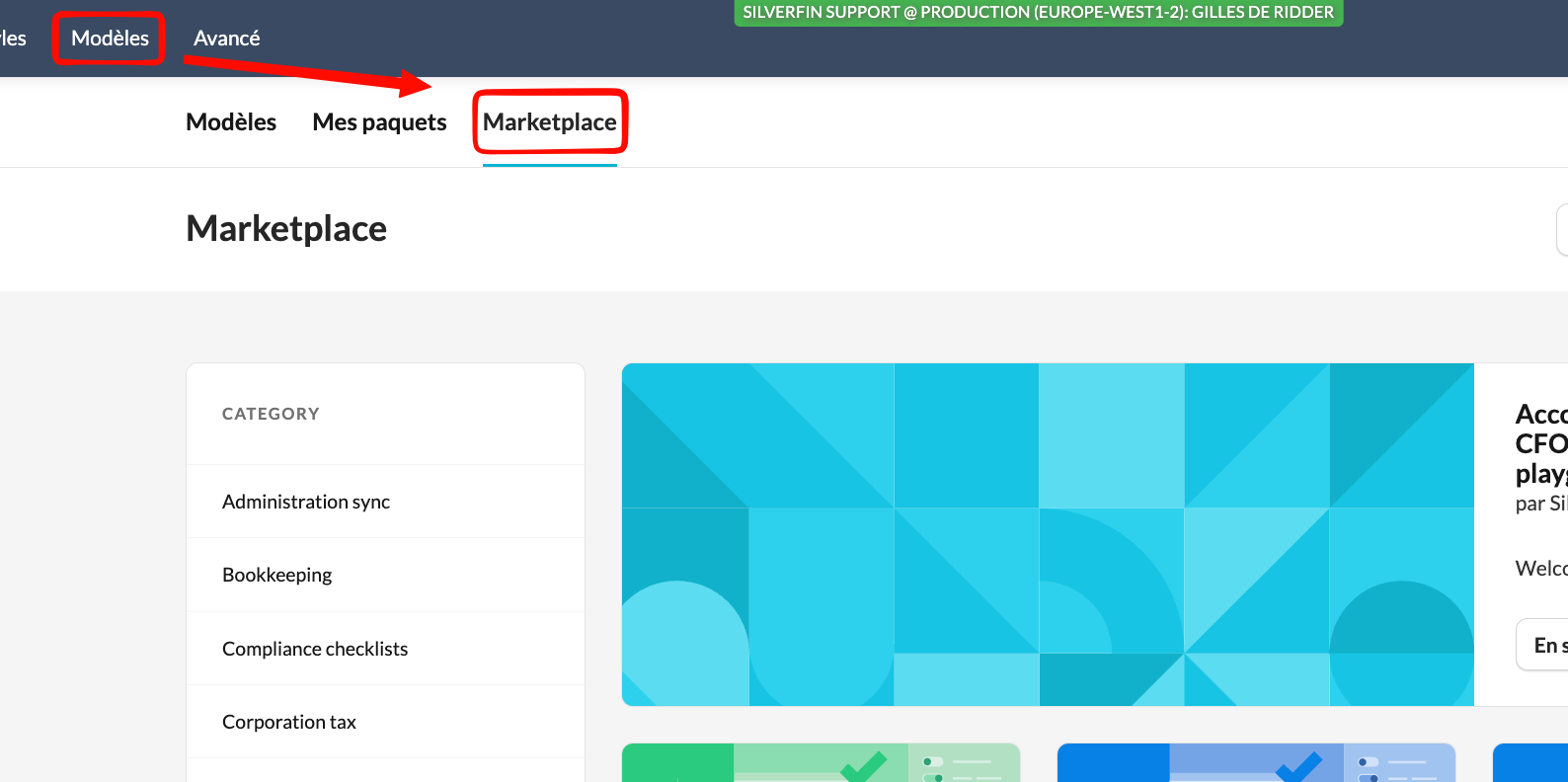 - Allez dans la Marketplace au niveau du cabinet.