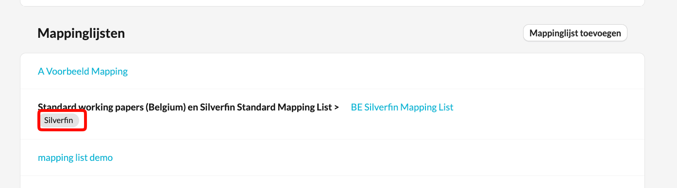 Listes de mapping fournies par Silverfin
