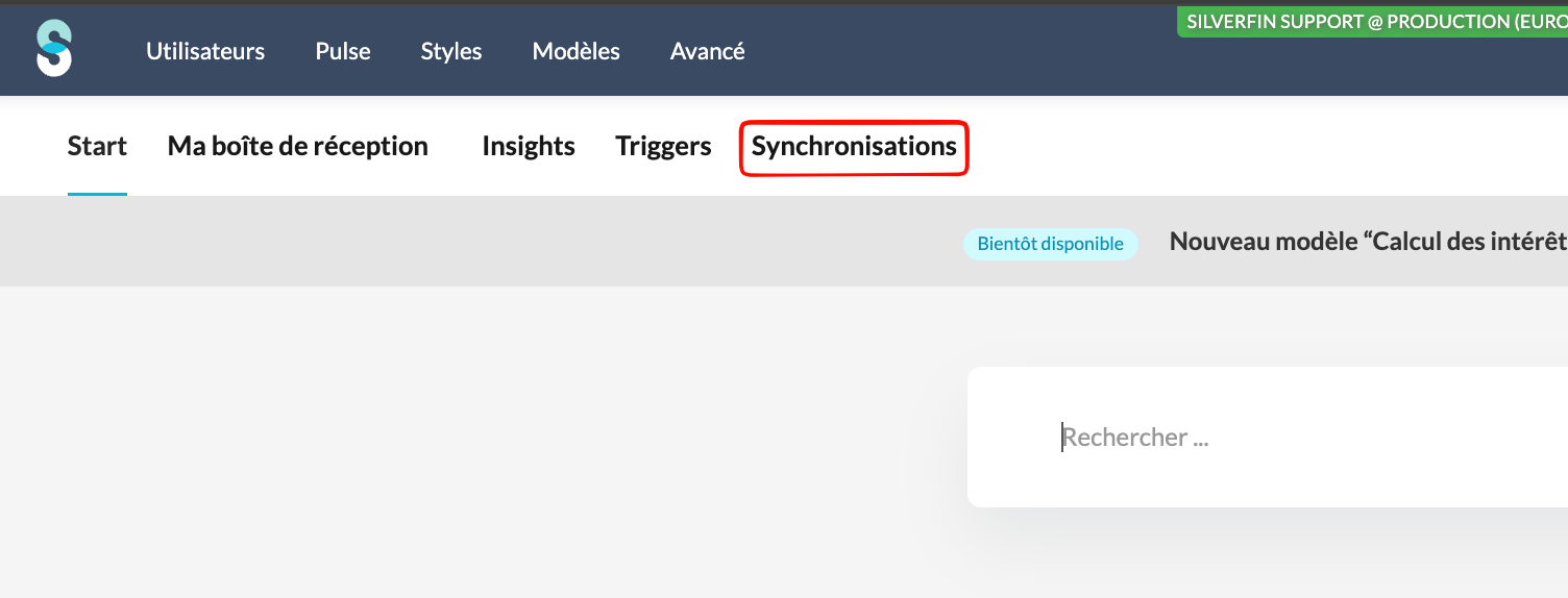 - Accédez à la page Synchronisations au niveau du bureau.