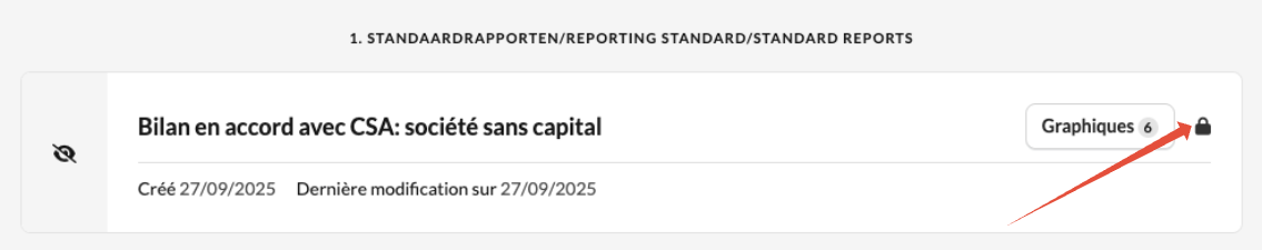 - Vous pouvez reconnaître un rapport verrouillé grâce à l'icône de cadenas affichée sur le côté droit du rapport dans votre dossier.