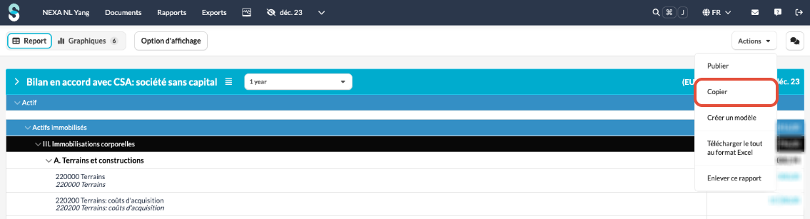 Cliquez sur le bouton Actions et sélectionnez "Copier".