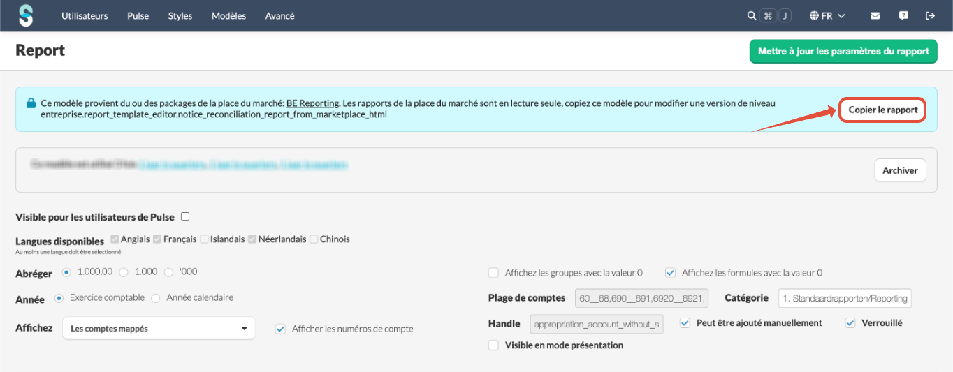 - Ouvrez d'abord le rapport, puis cliquez sur Copier le rapport.