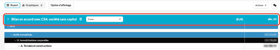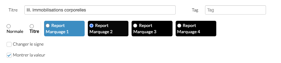 Dans l'éditeur de rapport, ces mêmes couleurs sont appliquées aux groupes et aux lignes.