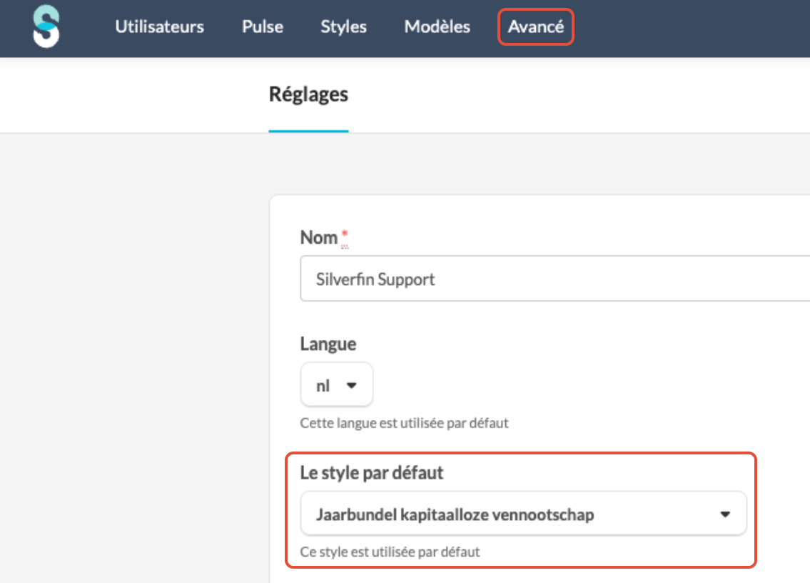 Localisez le style par défaut identifié.