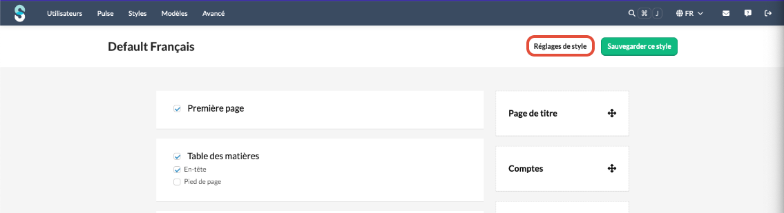 Ouvrez le style et cliquez sur Réglages de style .
