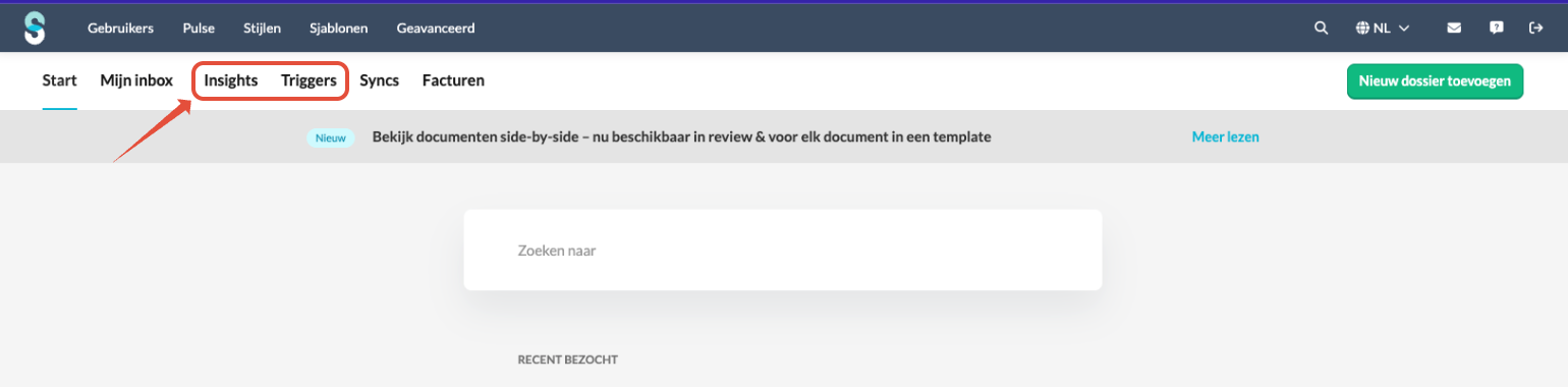 Heb je geen toegang tot de Triggers, neem dan contact op met je Customer Service Manager om de volledige Insights-module te activeren.