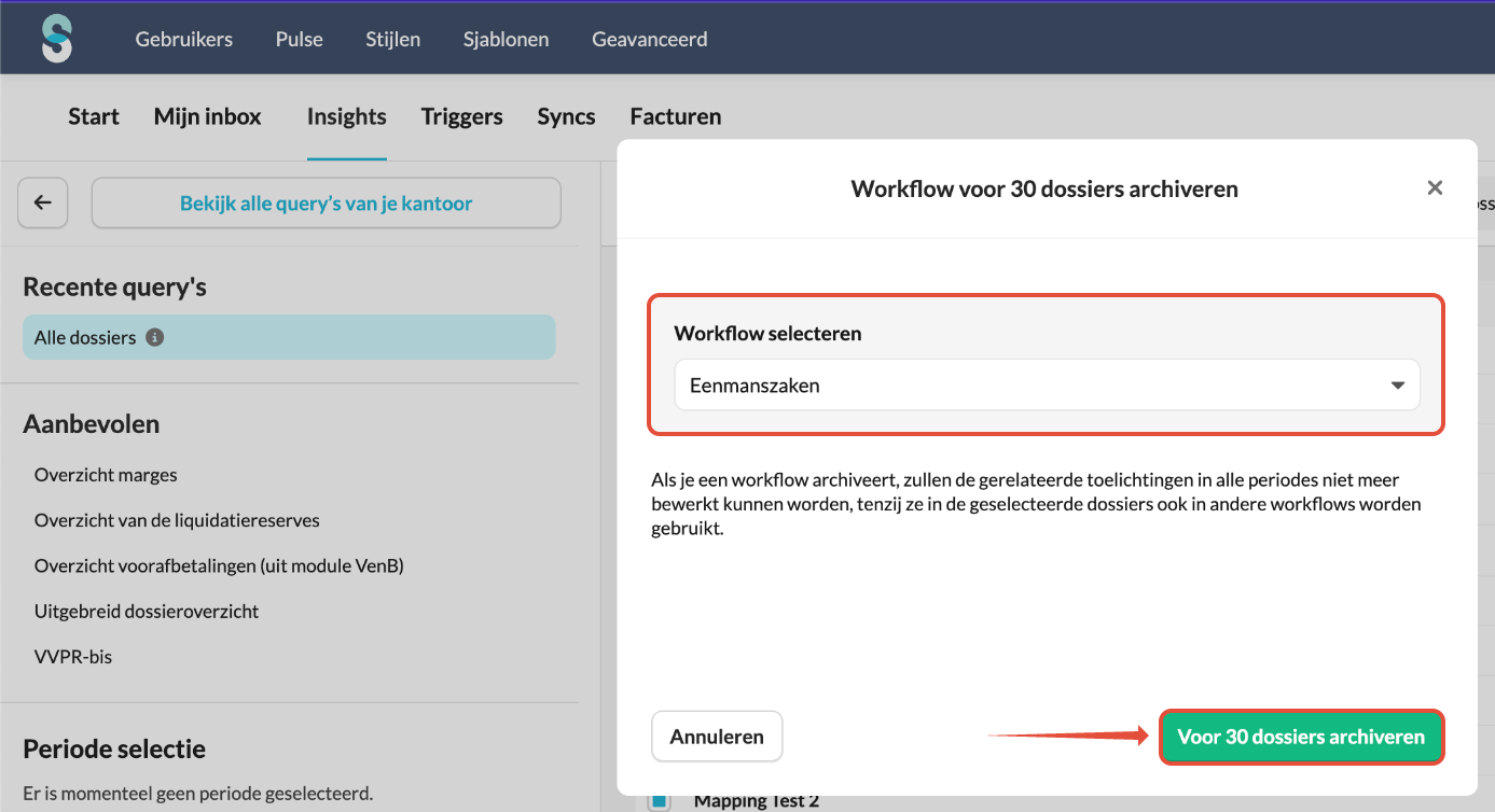 - Klik op Voor [x] dossiers archiveren om te bevestigen.
