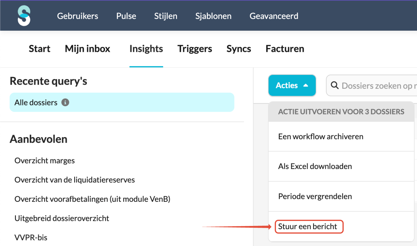 Met deze actie kunnen gebruikers tegelijk berichten verzenden naar meerdere dossiers.