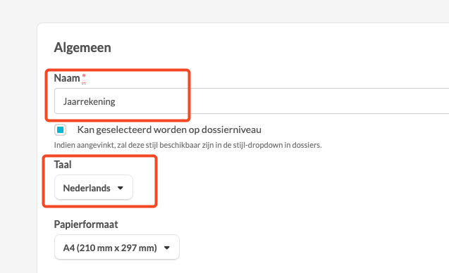 - Geef de stijl een duidelijke en beschrijvende naam in de taal waarin je de jaarrekening wil exporteren.