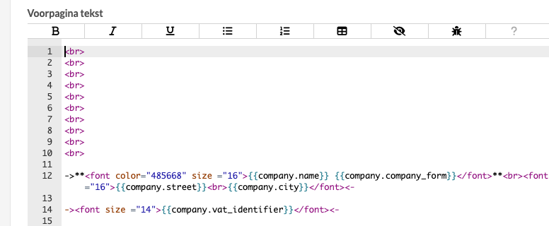 ->**<font color="485668" size ="16">{{company.name}} {{company.company_form}}</font>**<br><font size ="16">{{company.street}}<br>{{company.city}}</font><-