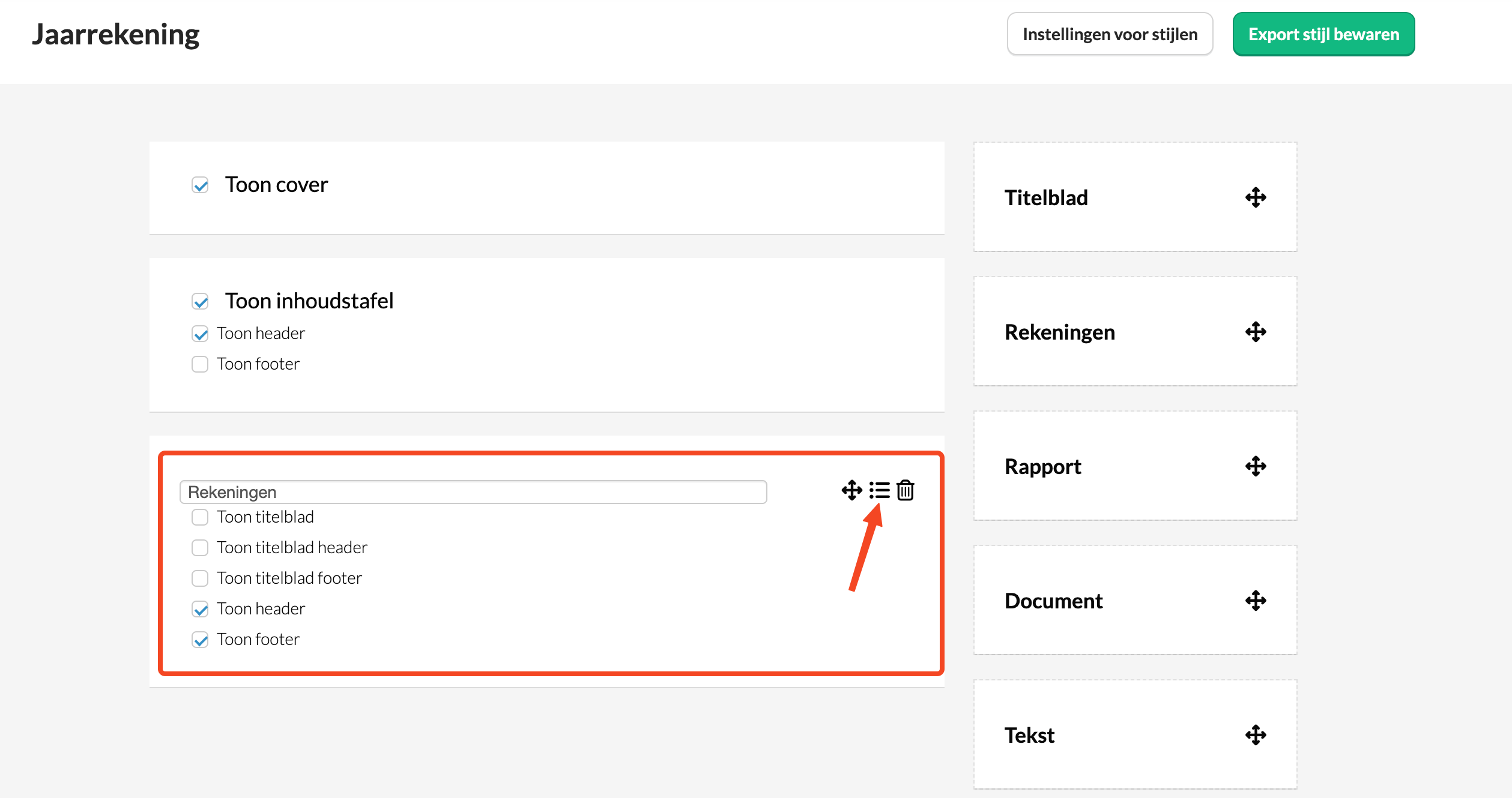 Volg deze stappen om een stijl aan te maken voor het exporteren van de jaarrekening in het Nederlands, Frans of Engels: