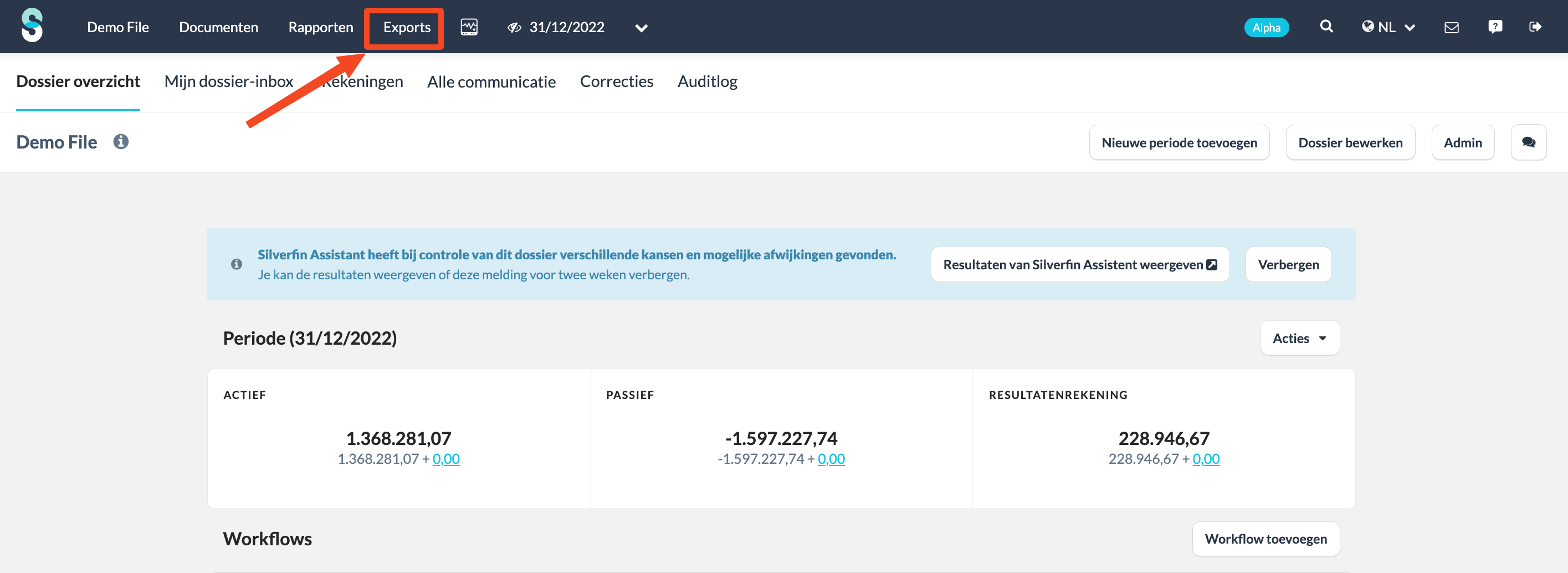 Volg onderstaande stappen om de PDF-export van de jaarrekening te genereren in een dossier: