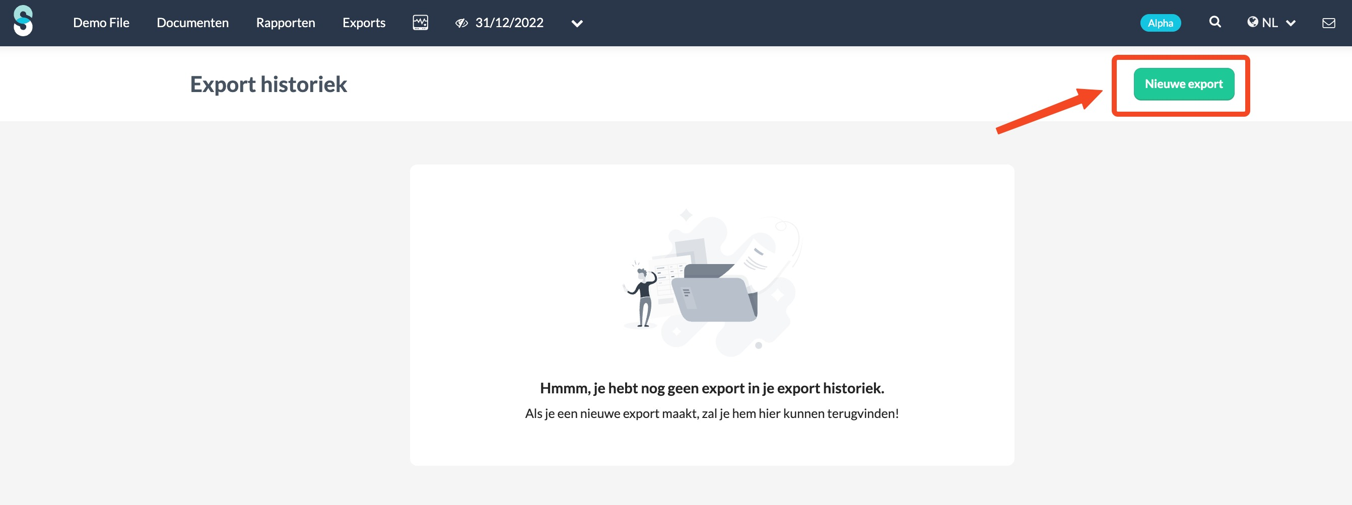 - Klik op Nieuwe export.