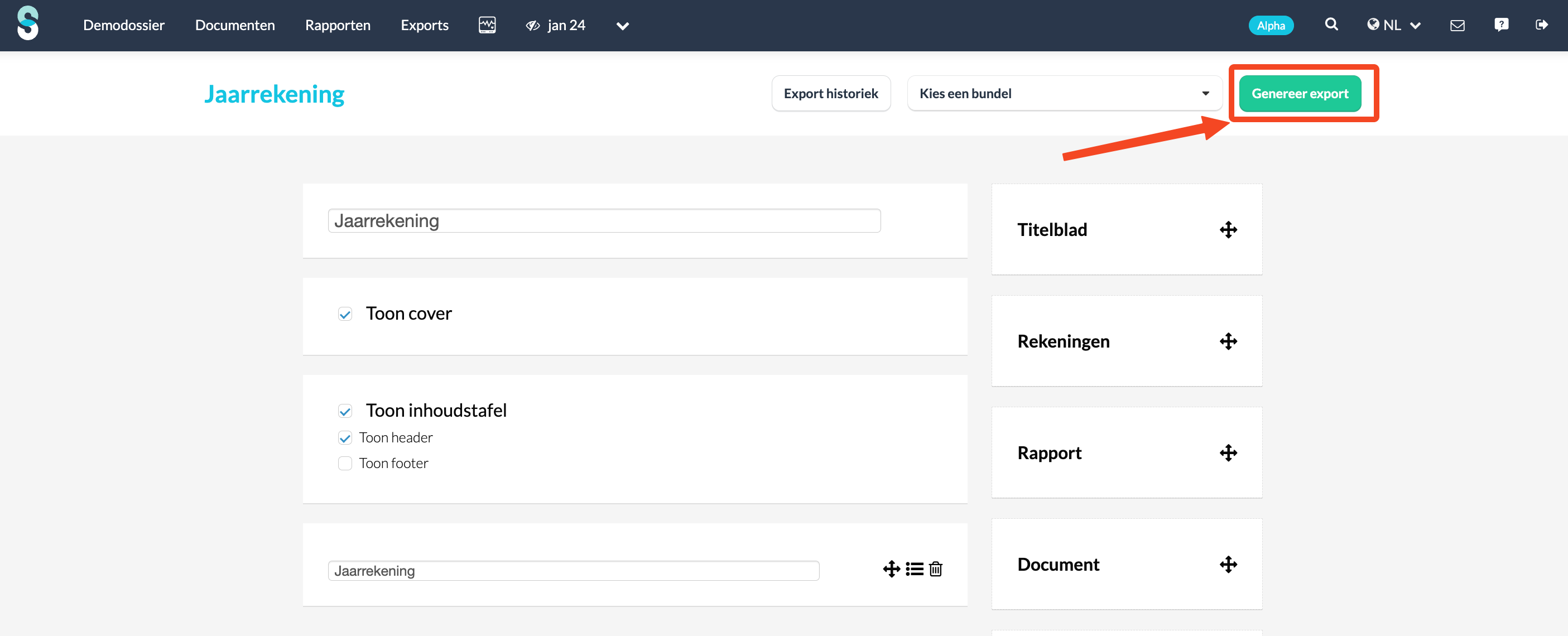 De PDF-export van de jaarrekening genereren in een dossier