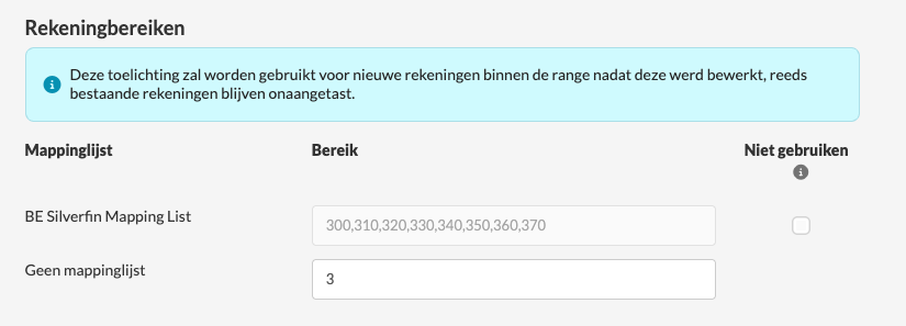 Op kantoorniveau kan een admin-gebruiker de ranges bepalen voor het sjabloon. Dit kan in verschillende scenario's worden gedaan, zowel bij het gebruik van mapping als wanneer er geen mapping wordt gebruikt.