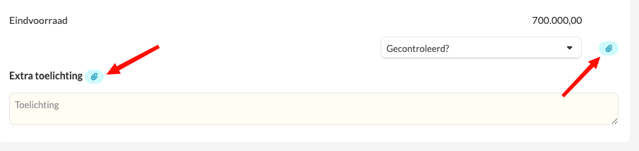 Met het drop-down menu kun je aangeven of de voorraad is gecontroleerd. Dit helpt bij het bijhouden van de status van je voorraad.