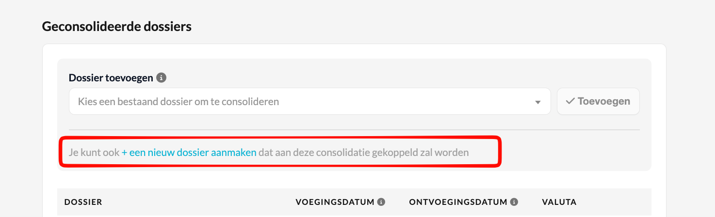 - Een consolidatiedossier is een premium dossier waarvoor andere kosten gelden.