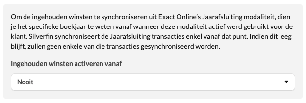 - In Silverfin, controleer de gekozen "ingehouden winsten"-instelling. Dit kan gecontroleerd en aangepast worden via Dossier bewerken > sync > sync veranderen.
