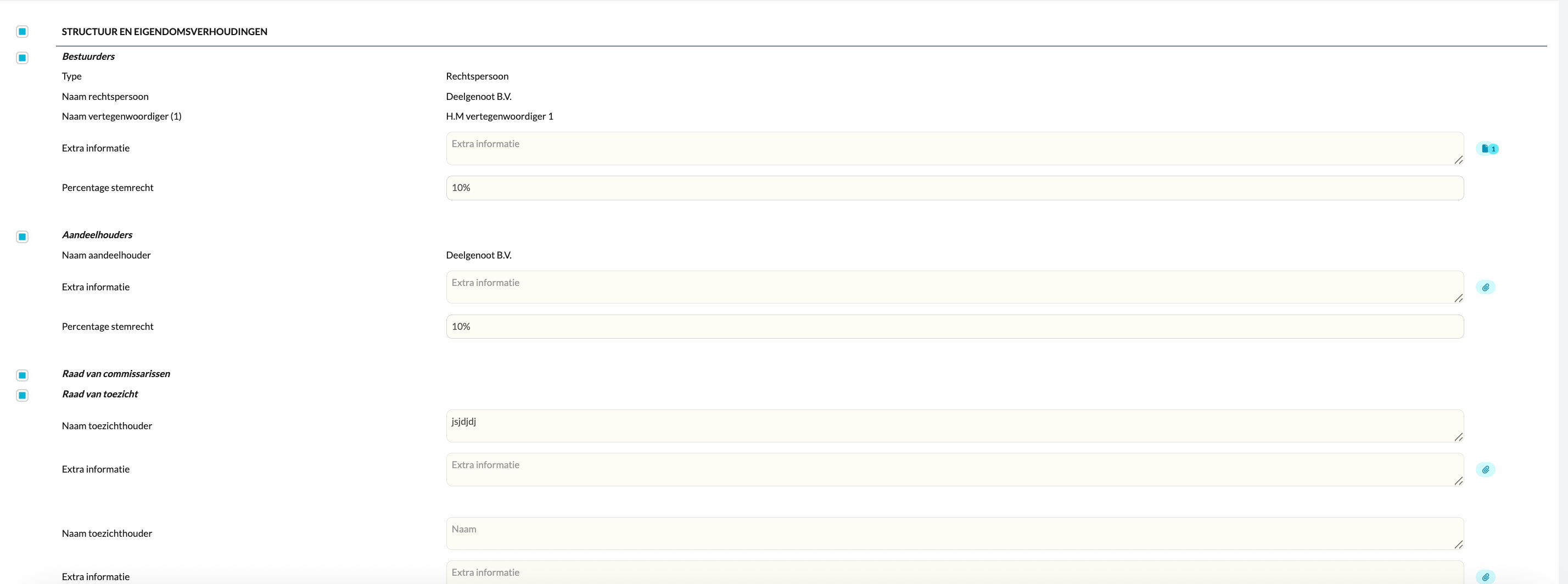 - Bestuurders: rechtspersonen of natuurlijke personen met stemrechtpercentages.