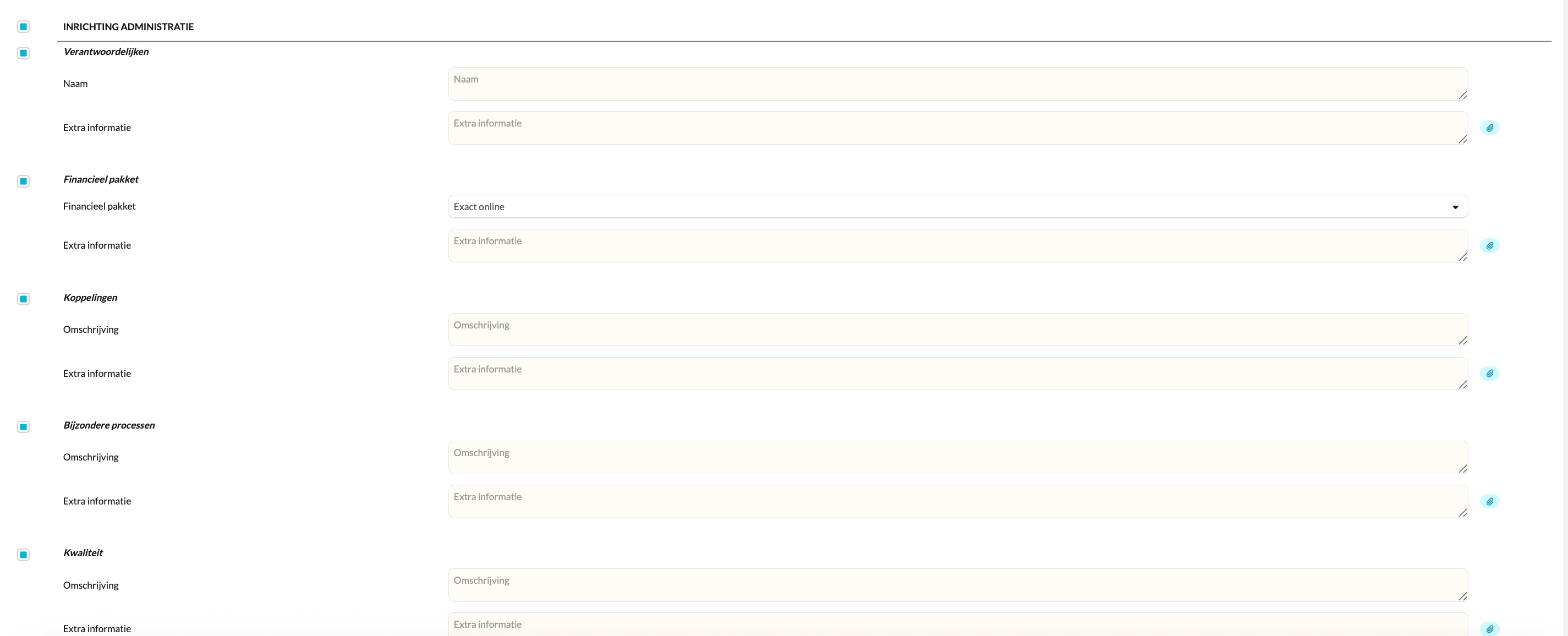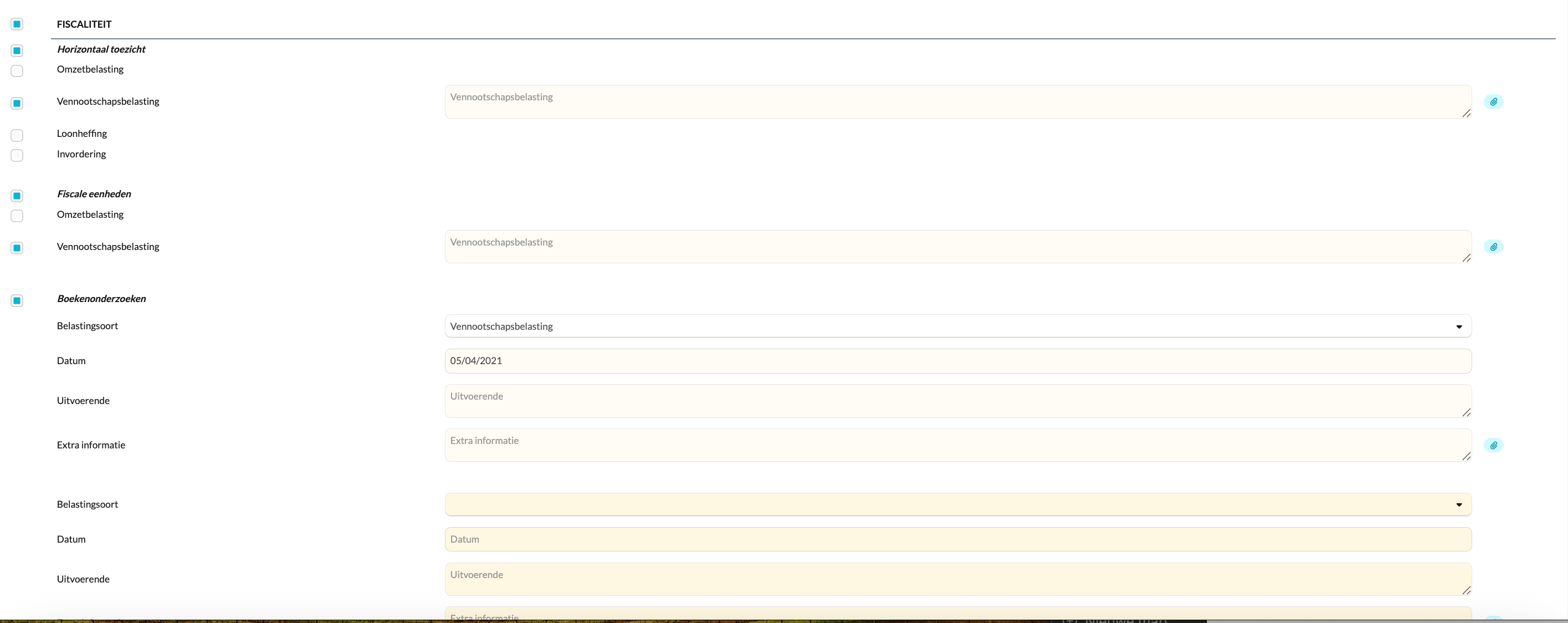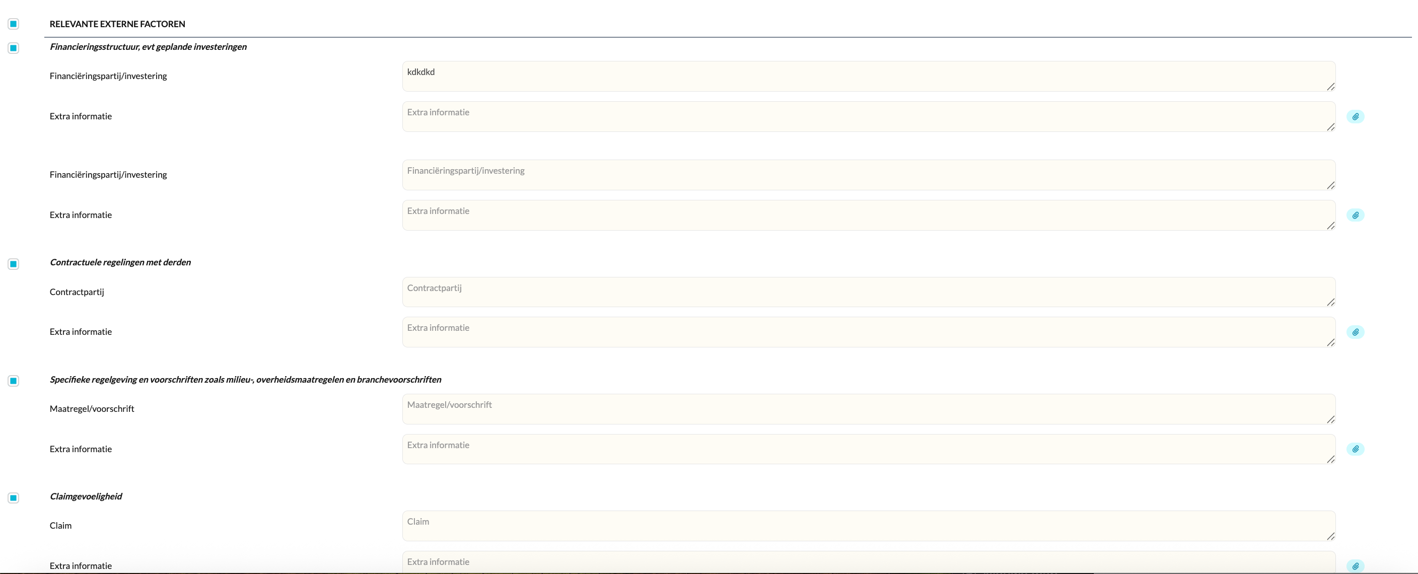 - Gebruik de velden voor extra informatie om documenten of toelichtingen toe te voegen.