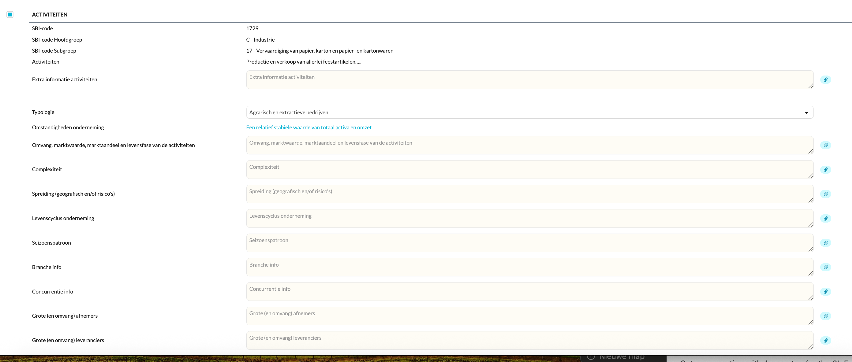 - Vul alle secties volledig en correct in om een compleet beeld te vormen van de onderneming.