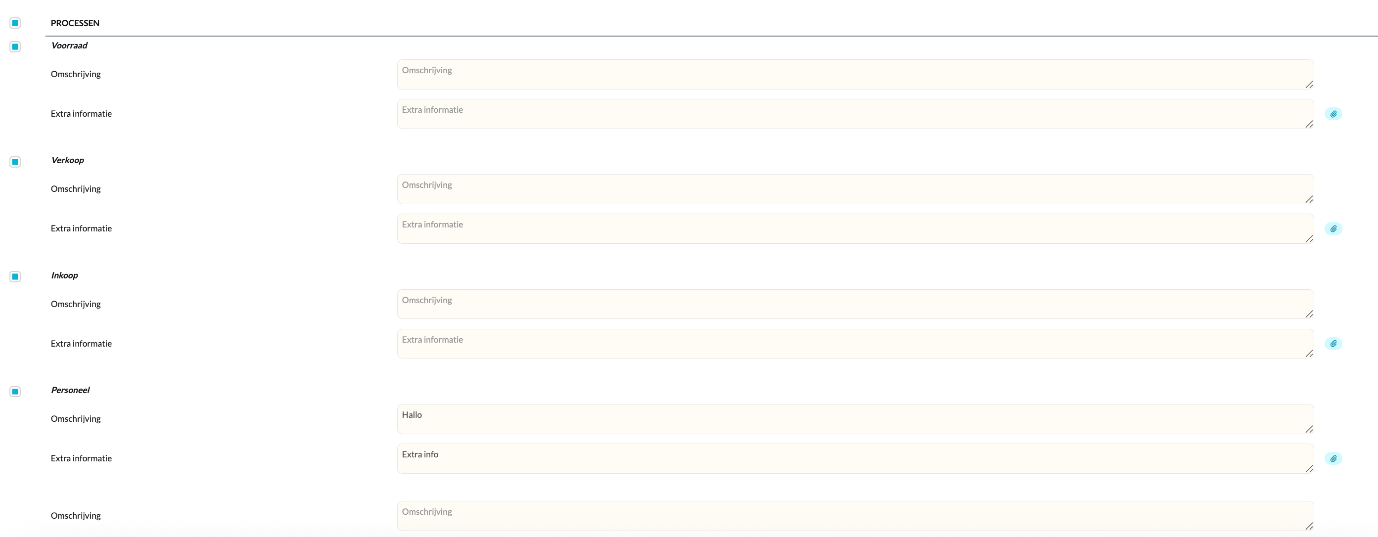 Per proces kun je een omschrijving en extra toelichting toevoegen.