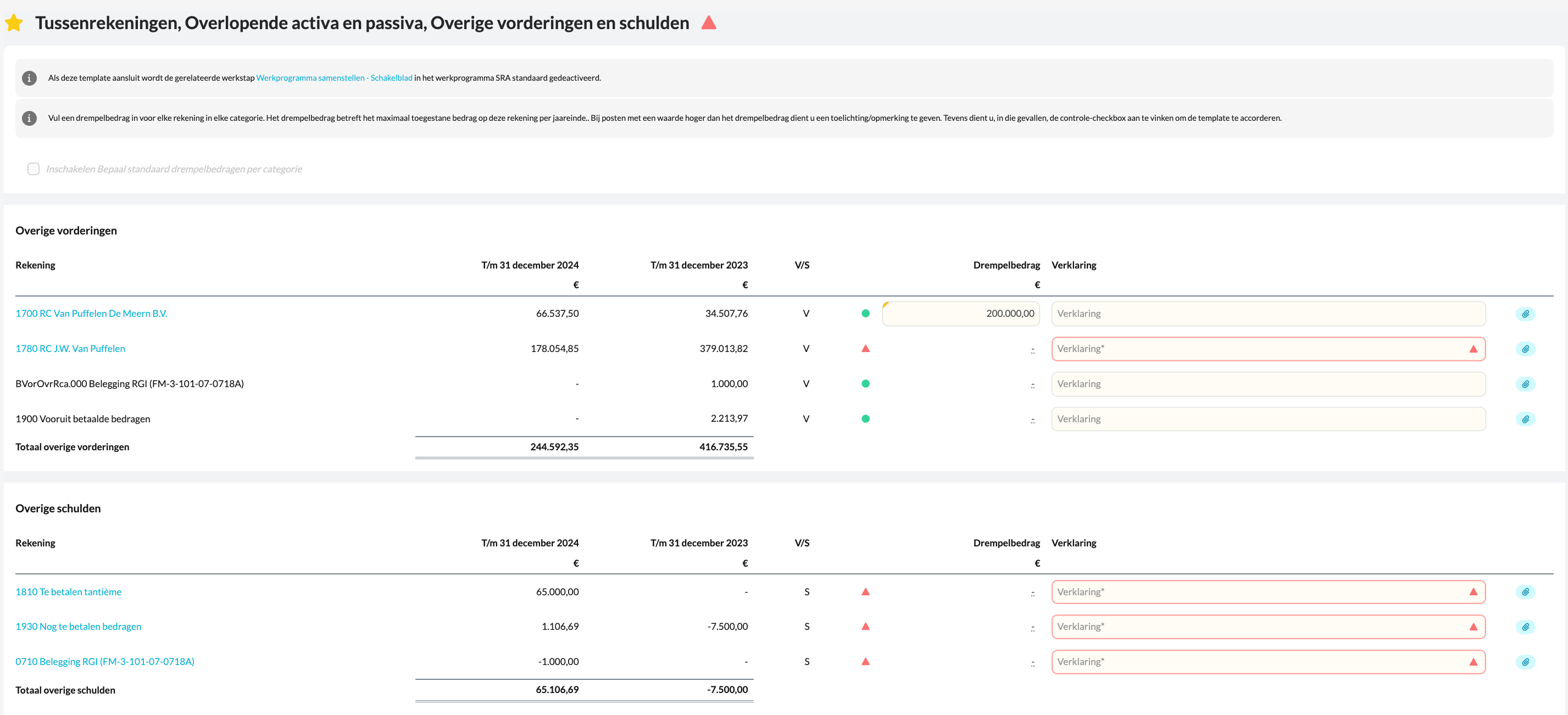 Deze template helpt je om rekeningen te identificeren waarop geen of slechts tijdelijk een saldo hoort te staan en om eventuele afwijkingen toe te lichten.