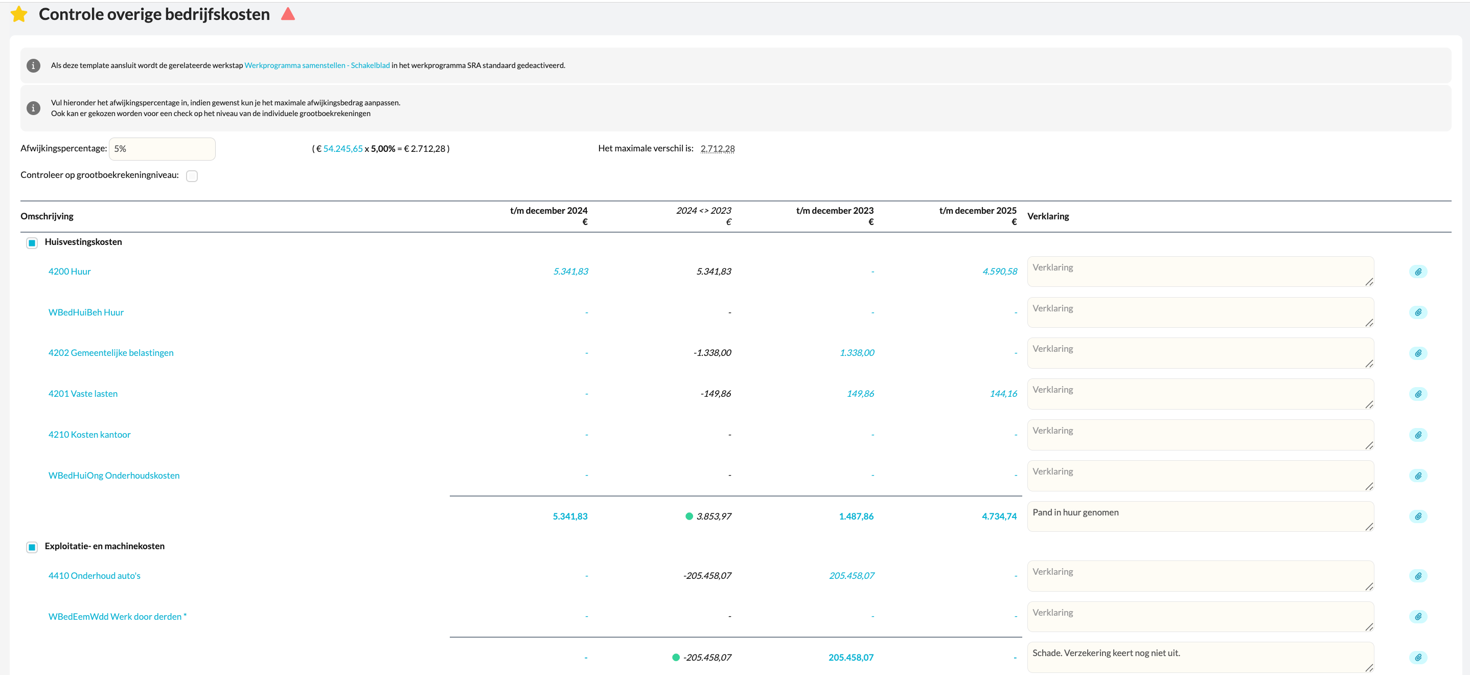 Zo kun je eenvoudig zien waar de afwijking vandaan komt en welke posten nadere toelichting vragen.