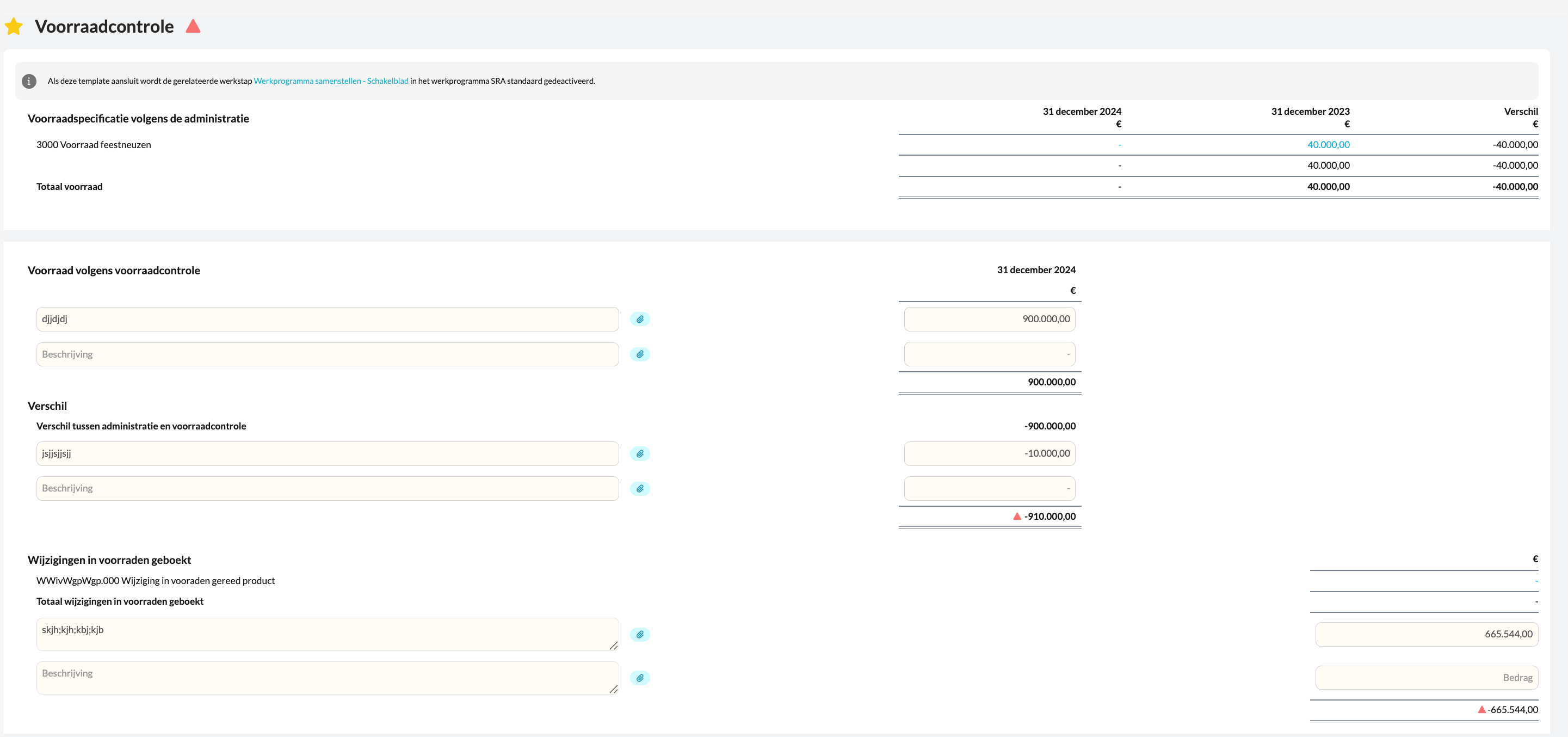 Deze template geeft een overzicht van alle rekeningen die gekoppeld zijn aan voorraden en helpt je om de administratieve voorraad te controleren en te verklaren.