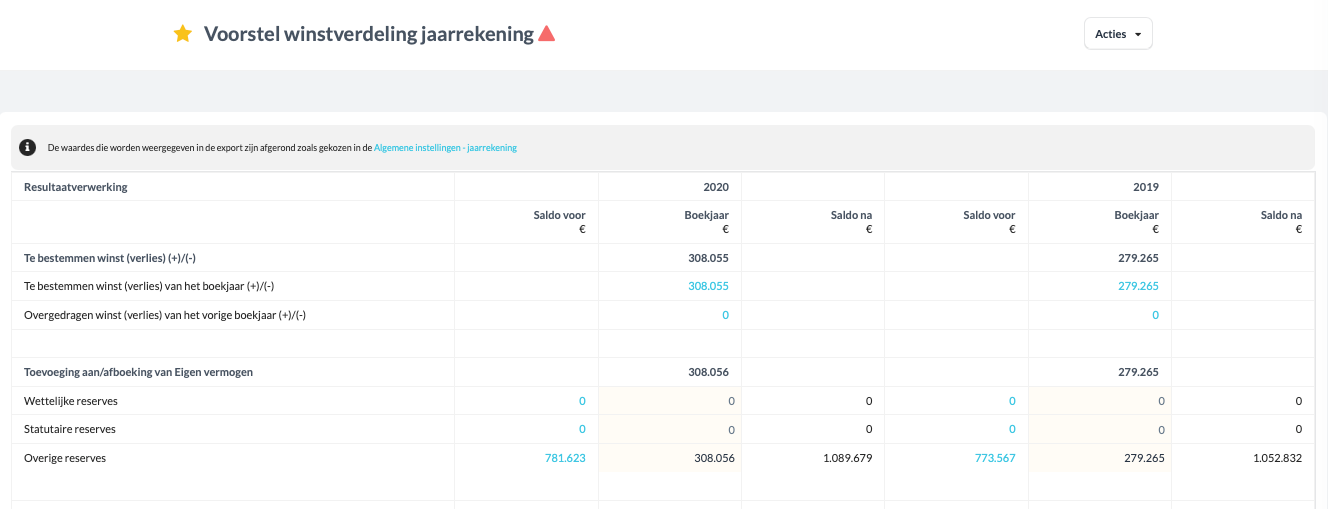 Dit is nodig omdat het winstverdelingsvoorstel niet altijd automatisch correct wordt verwerkt in de boekhouding.
