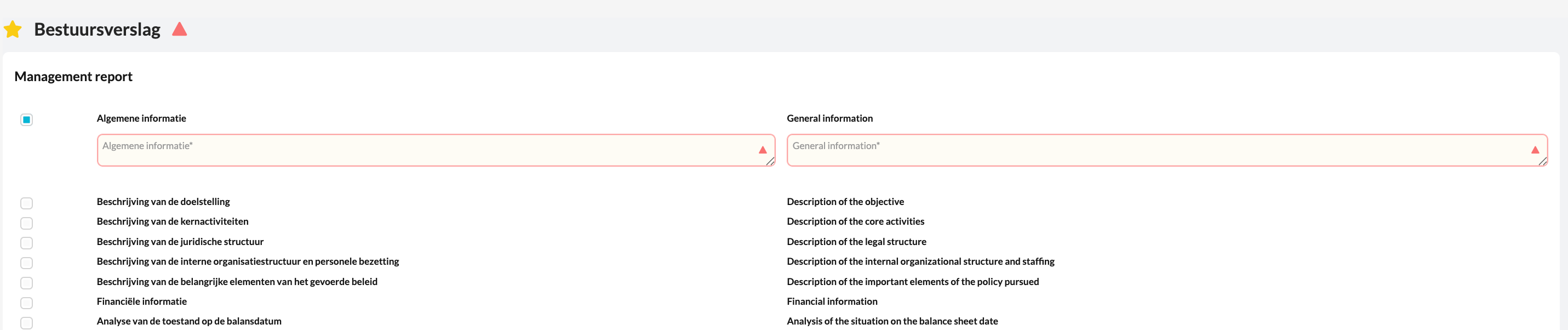 De template Bestuursverslag geeft de mogelijkheid om een volledig bestuursverslag op te nemen in de jaarrekeningexport.