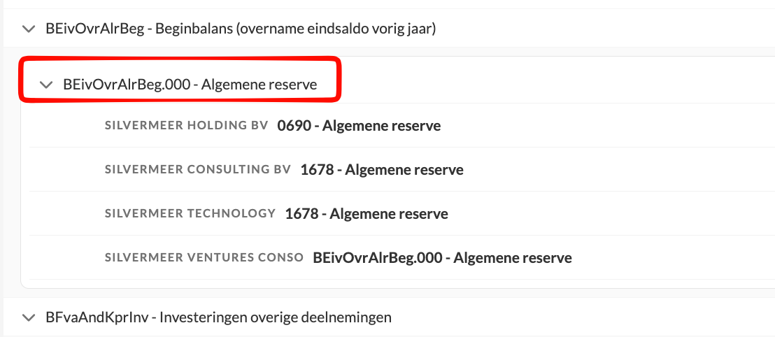- Dit toont de gemapte rekening in het consolidatiedossier.