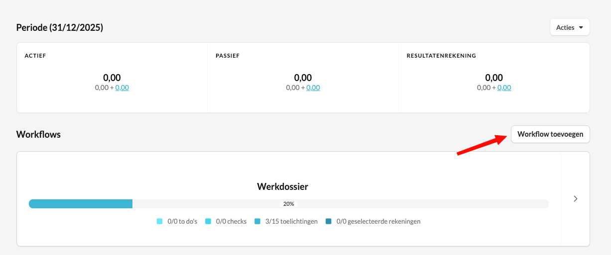 Zodra het gewenste Fintrax-pakket is geactiveerd, kun je de bijbehorende workflow aan een dossier toevoegen: