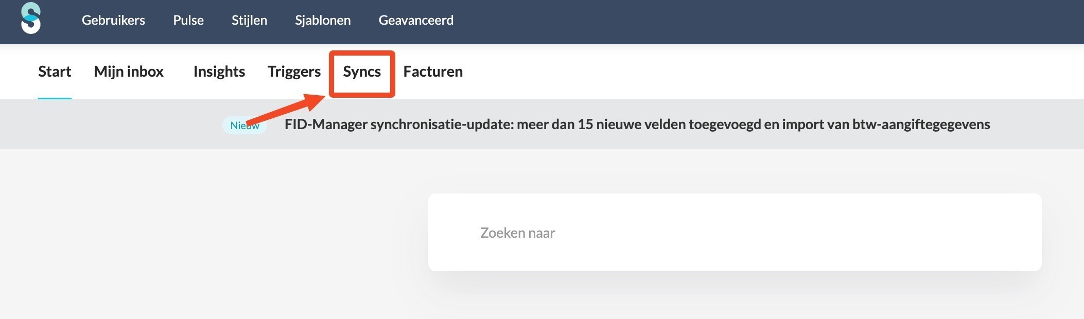 - Ga naar de start pagina in Silverfin en klik op de tab 'Syncs'.