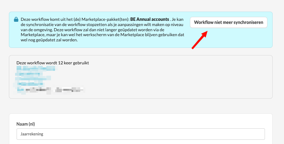 Als je meer flexibiliteit of dossierspecifieke aanpassingen nodig hebt, kan je overwegen de workflow uit de Marketplace los te koppelen.